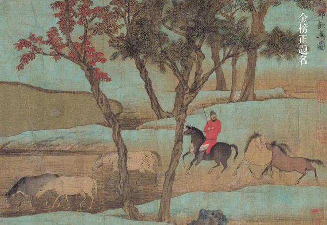 图有御题云“我有十骏骏皆良,孰居首者万吉骦”,万吉骦是十骏之首,有一马当先,高居榜首的吉祥寓意,与金榜题名的年度主题珠联璧合。