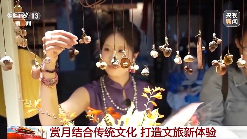 还有不少地方将赏月游览和沉浸式文化体验深度融合,山东淄博周村古商城景区结合中秋主题推出实景穿越沉浸式剧本游,打造出文旅新体验。不少游客可以同时体验票号、状元府、大染坊等多个场景。而山东济南的大明湖超然楼前人头攒动,游客们登楼赏月,耳畔回荡着悠扬乐曲。